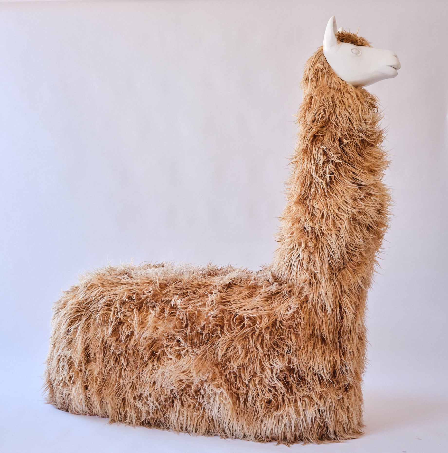Handmade wooden llama seat coated with wool. Perhaps the most controversial yet cuddly piece of decor, destined for the real cult lover in you. Created with the solemn purpose to inject positivity and cuteness in your space.