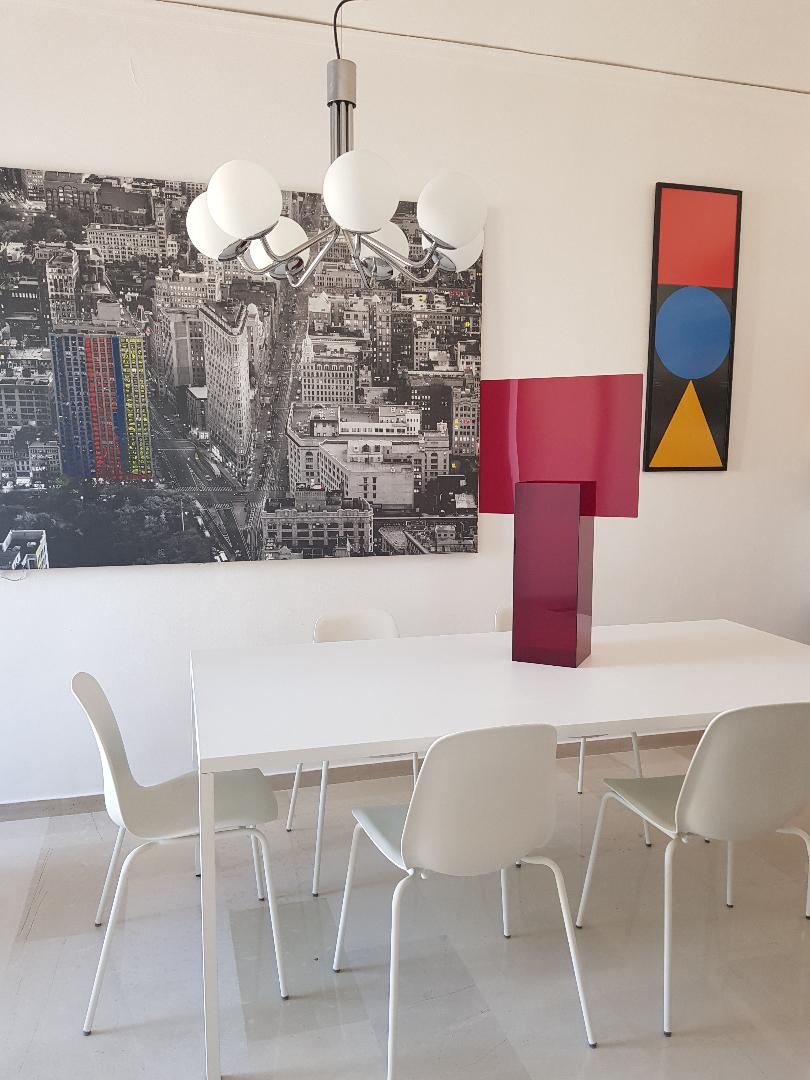 Polymorphic vase, the base is red and the red extra piece can be worn horizontally and vertically or not at all depending the mood..